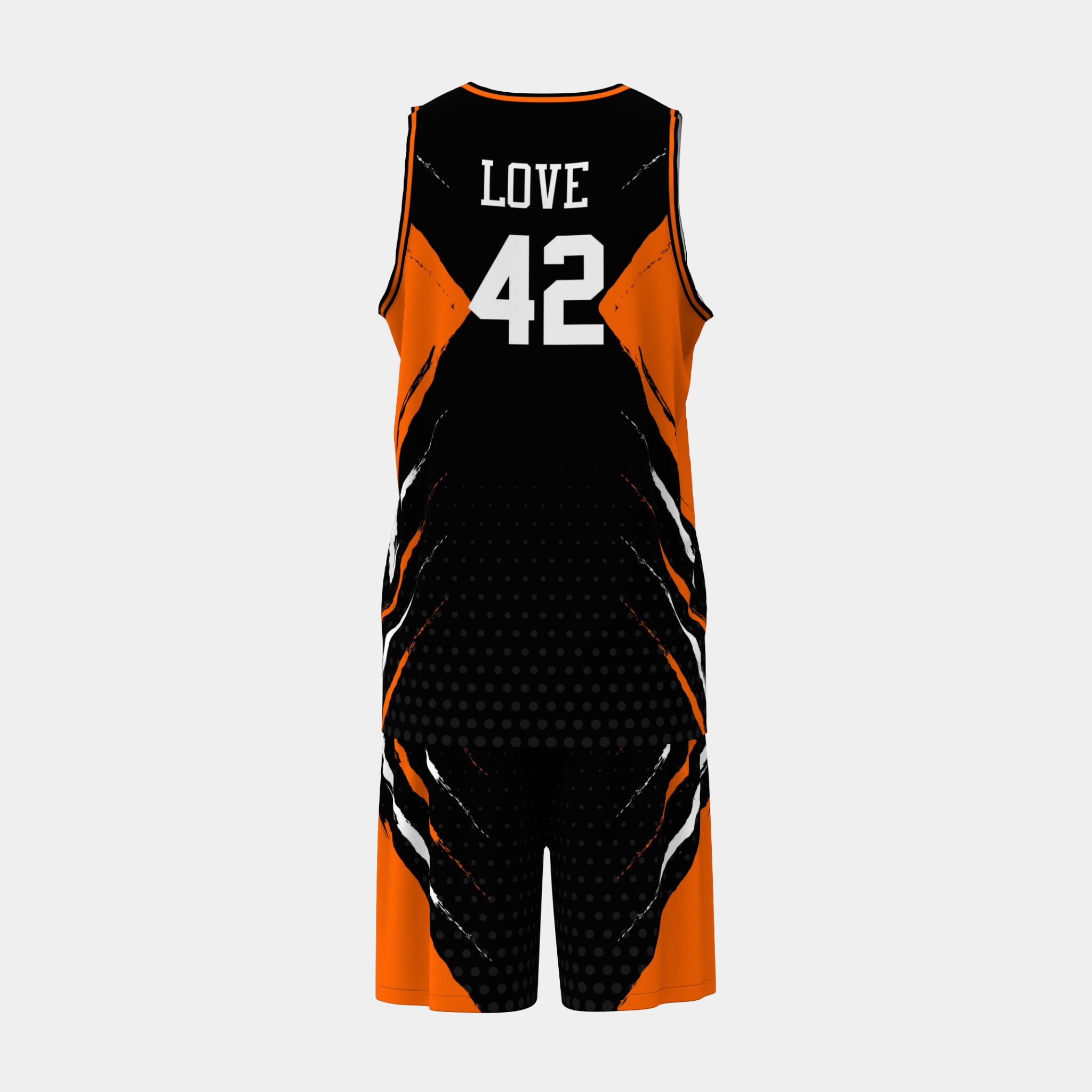 Customize your own basketball jersey set for free with our 3D product customizer tool below.  Our customizer allows you to change colors, add text and graphics, and upload a team roster with all your player names and numbers.