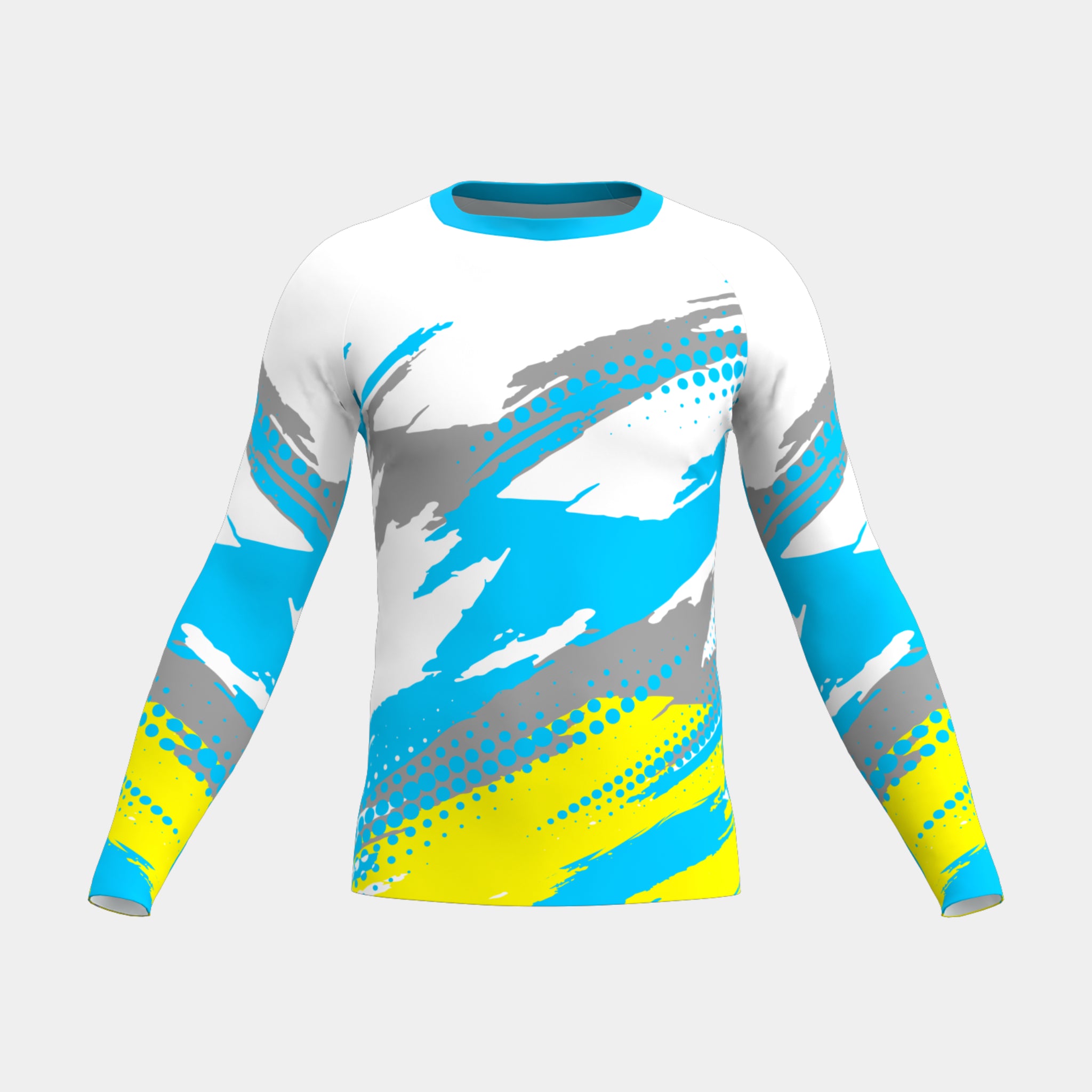 Customize your own men's rash guard for free with our 3D product customizer tool below.  Our customizer allows you to change colors, add text and graphics, and upload a team roster with all your player names and numbers.