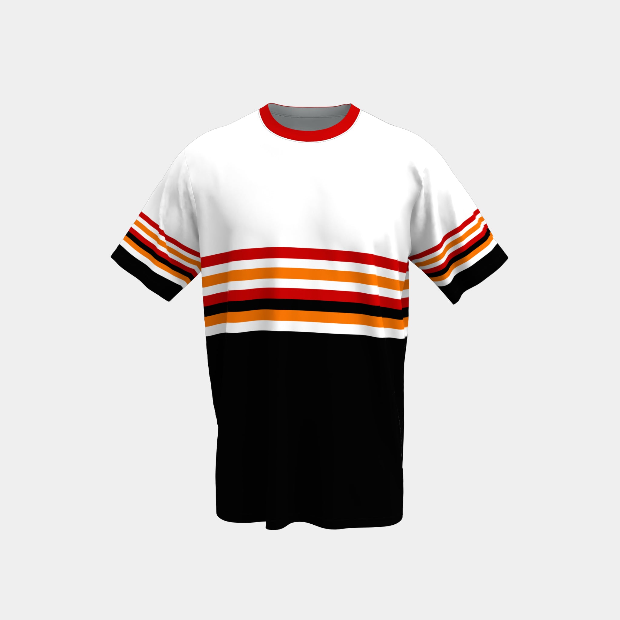 Customize your own men's crew neck jersey for free with our 3D product customizer tool below. Our customizer allows you to change colors, add text and graphics, and upload a team roster with all your player names and numbers.