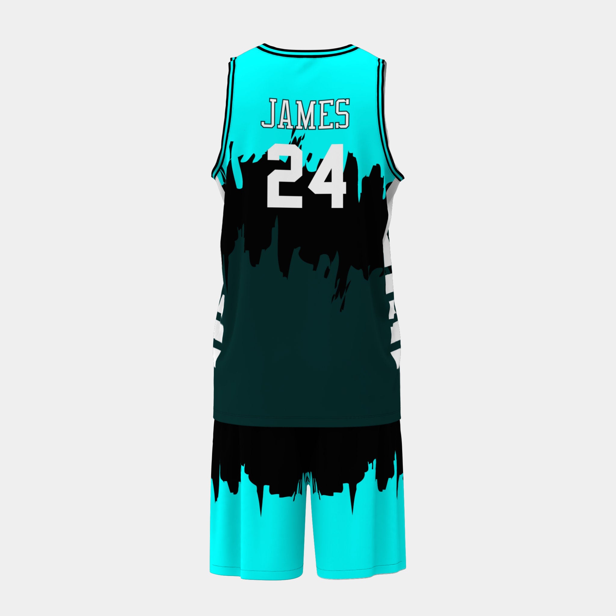 Customize your own basketball jersey set for free with our 3D product customizer tool below.  Our customizer allows you to change colors, add text and graphics, and upload a team roster with all your player names and numbers.