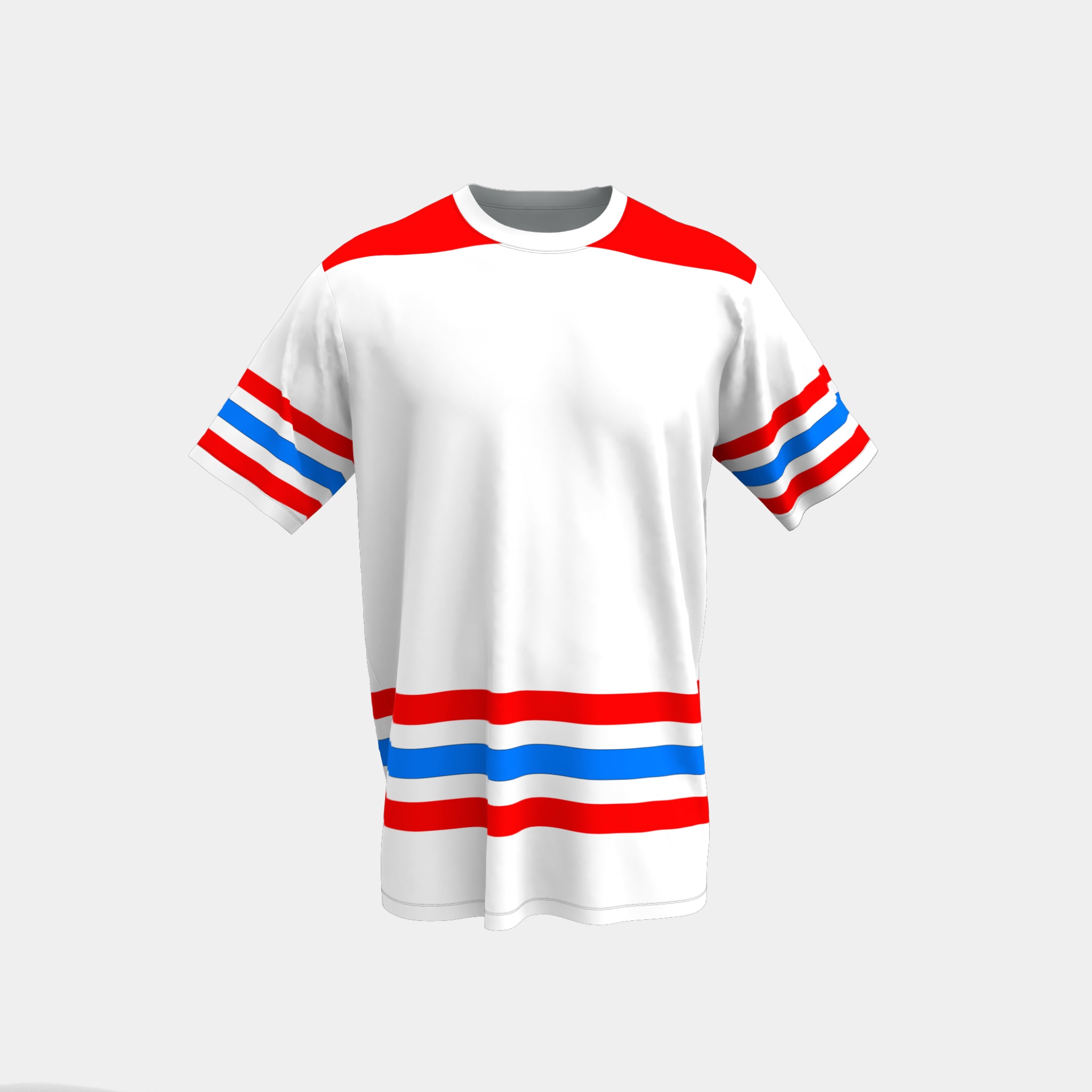 Customize your own men's crew neck jersey for free with our 3D product customizer tool below.  Our customizer allows you to change colors, add text and graphics, and upload a team roster with all your player names and numbers.