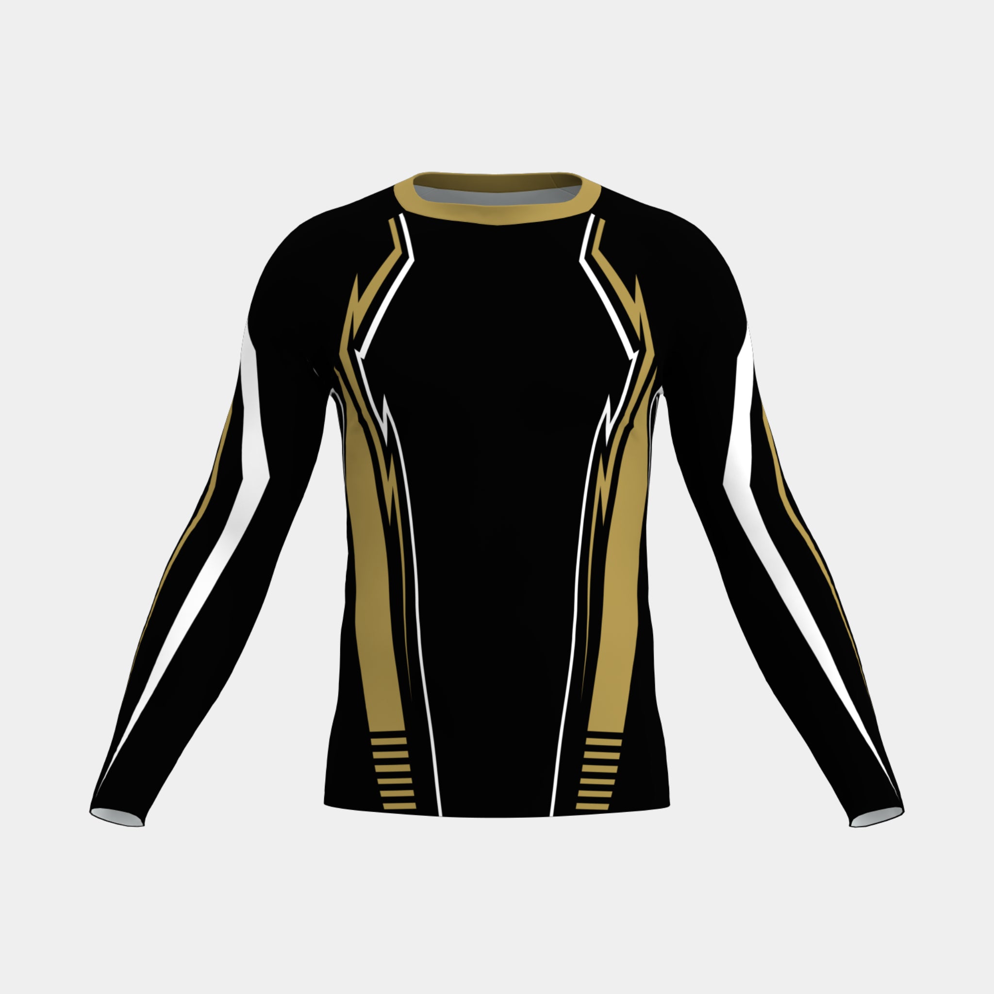 Customize your own men's rash guard for free with our 3D product customizer tool below.  Our customizer allows you to change colors, add text and graphics, and upload a team roster with all your player names and numbers.